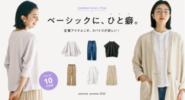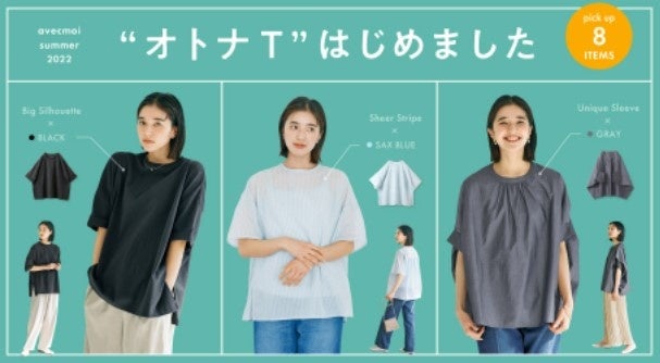 スタイリスト佐藤かなの「いま、本当に着たい服」をカタチにしたブランド「avecmoi[アヴェクモワ]」が涼やかな素材と色合いの2022年夏新作を発表、ウェブ販売中