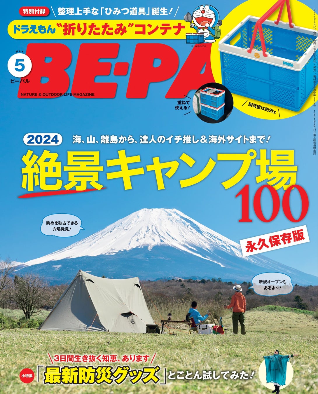 4月9日発売、BE-PAL5月号の特別付録は、ドラえもんカラーがかわいい『ドラえもん “折りたたみ” コンテナ』。ハンドル付きだから持ち運びもラクラク、ササッと折りたためるのも便利。キャンプはもちろんピクニックや公園遊びにもってこい!また、家でもオフィスでも車内でも、文房具入れや道具入れとして使えるスグレモノです。使い方はアナタ次第!
