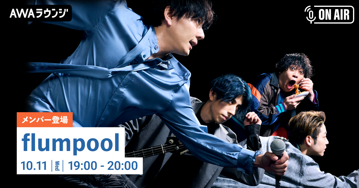 AWA株式会社(本社:東京都港区、代表取締役CEO:冨樫晃己)が運営する、サブスクリプション型(定額制)音楽ストリーミングサービス「AWA(アワ)」は、2023年10月11日(水) 19:00~20:00の1時間に渡り、オンライン空間「ラウンジ」で、flumpoolのメンバーが音声とチャットで参加するイベントを開催いたします。