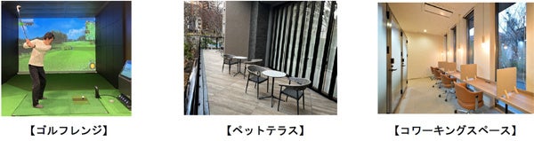 「ロイヤルパークス仙台青葉通」の外観は、「青葉通り」のケヤキ並木をモチーフにデザイン。共用部には、ゴルフシミュレーターを使用した「インドアゴルフレンジ」や「ペットテラス」「コワーキングスペース」「キッズスペース」などを設けました。また、「Miraiフォレスタ仙台青葉通」には、「カフェテリア」や「共用キッチン」「ラウンジ」「スタディールーム」を設け、快適な学生生活をサポートします。