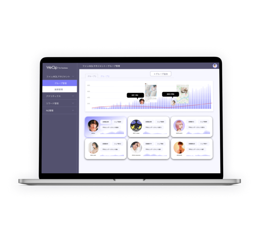 (Fan Relationship Management)の法人向けサービス(https://weclip.link/lp/biz/frm)を展開。