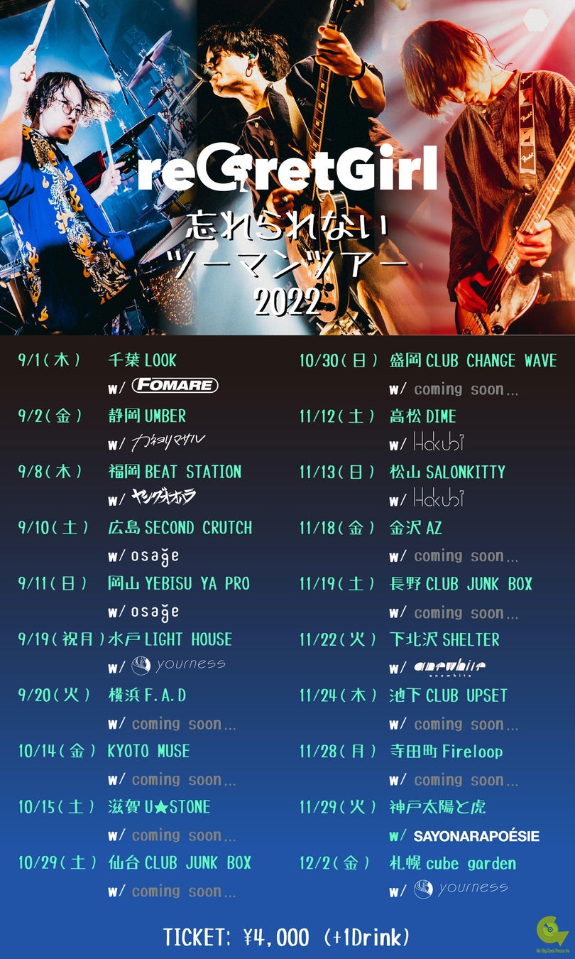「reGretGirl presents 忘れられないツーマンツアー2022」開催決定!!