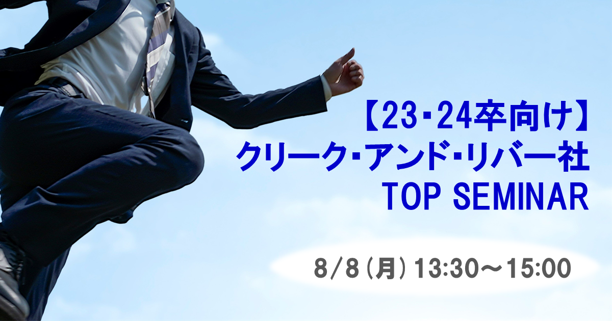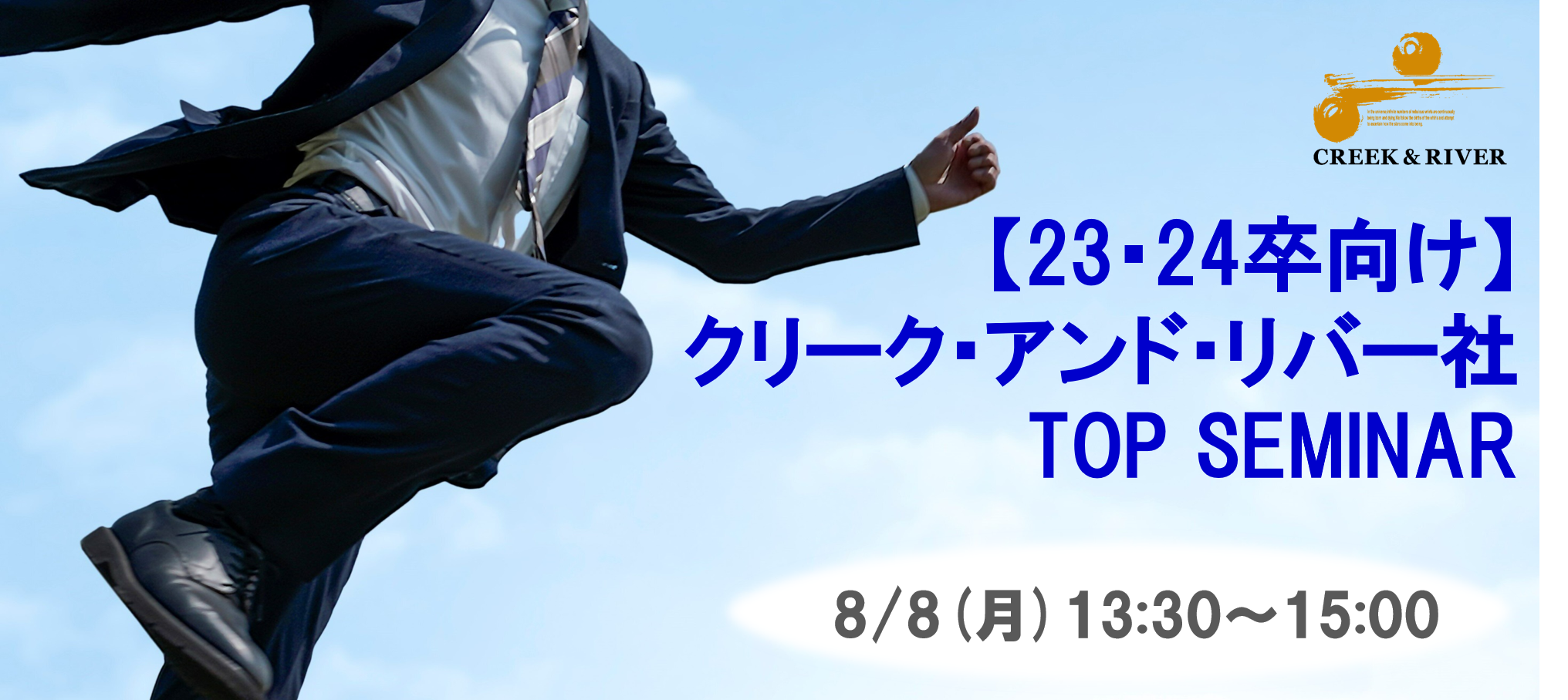 株式会社クリーク・アンド・リバー社(C&R社)は8月8日(月)、2023年もしくは2024年3月末までに大学・大学院・短期大学・専門学校を卒業・修了予定の学生の方々を対象に、スペシャルセッションとして、C&R社代表取締役社長の井川幸広が登壇する「TOP SEMINAR 2022」をオンラインで開催いたします。