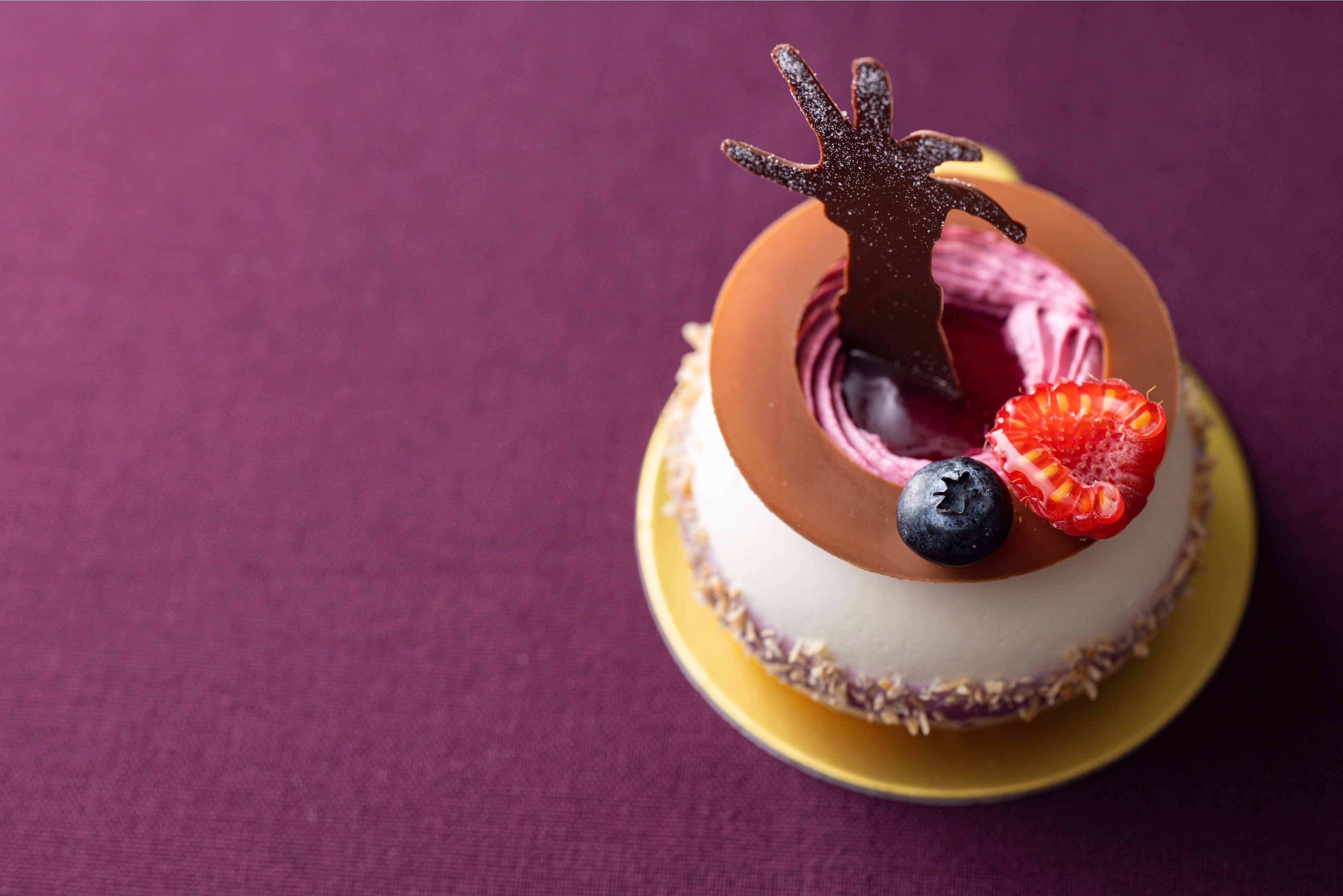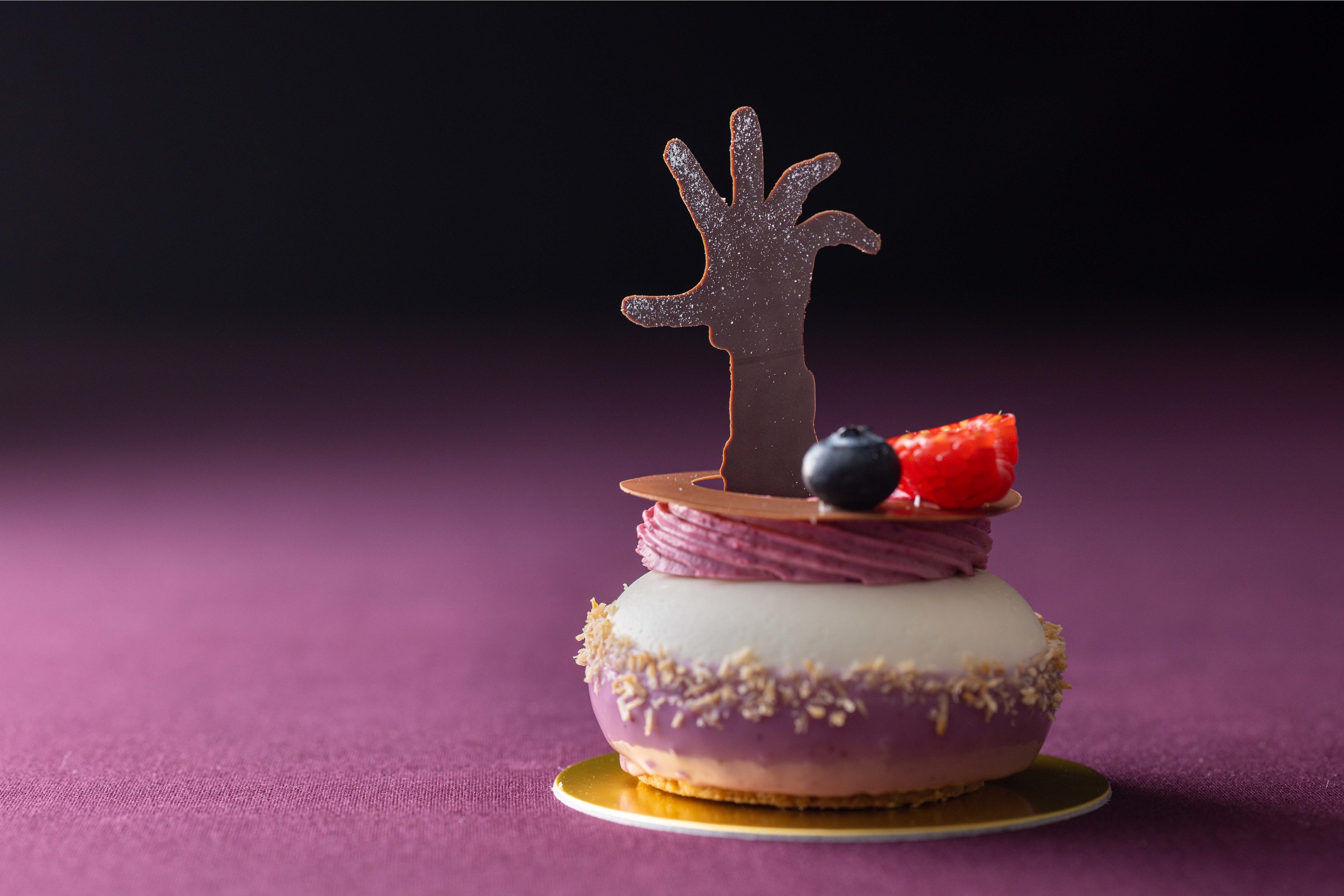 ハロウィン期間限定の特別なケーキは、シェフのイマジネーションを形にした表現力たっぷりのデザイン。見た目で楽しく食べておいしい、味のバランスにこだわった、技術が光る仕上がりになっています。