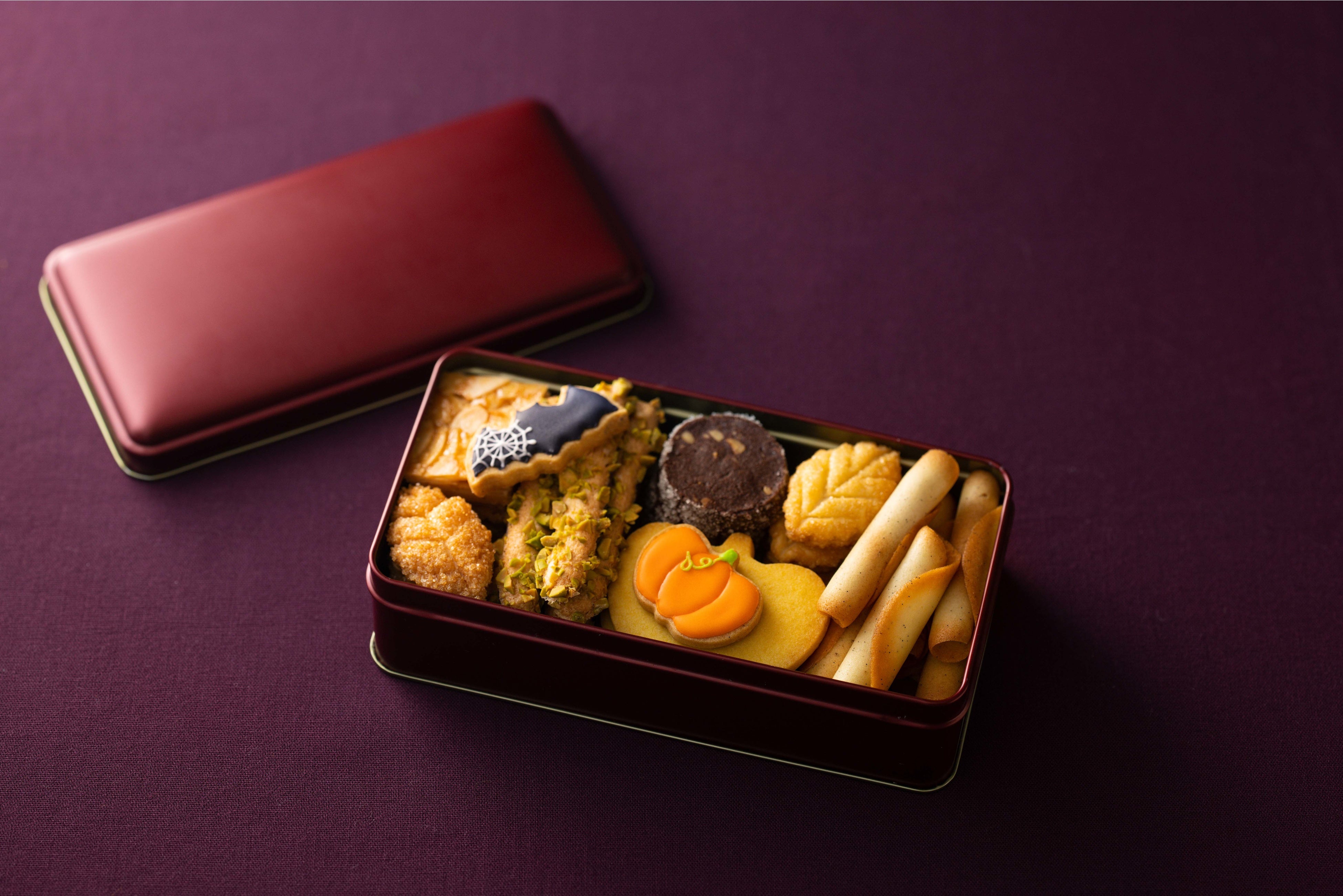 今回の新作となるクッキー缶は、秋のイメージたっぷりのクッキーを7種類詰め合わせました。温かみを感じられる彩りで、実りの季節の手土産にもピッタリです。この機会にシェフ渾身のアイテムの数々をぜひご堪能ください。