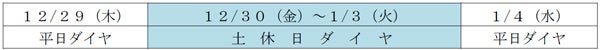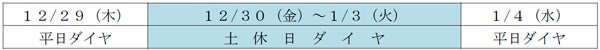 年末年始のダイヤについて