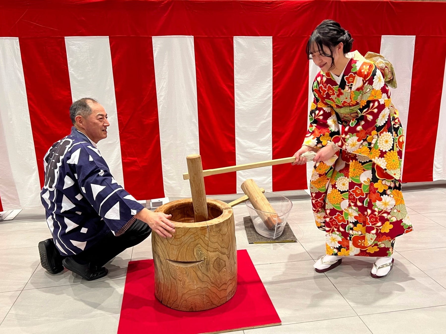 ◆ お正月の風物詩「お餅つき」を体験。その後はぜんざいやお餅をご用意しております。