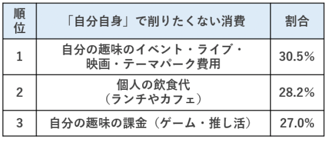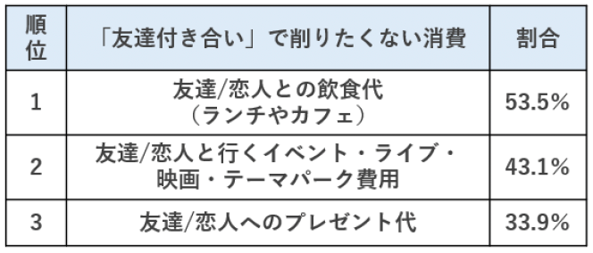 ■友達付き合い・自分自身の生活で削りたくない消費上位に「イベント・ライブ・映画・テーマパーク」