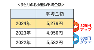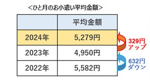 今年で3回目となったお小遣い実態調査。高校生がひと月にもらっているお小遣いの2024年の平均金額は「5,279円」となりました。これは、昨年の4,950円よりも329円アップ、また一昨年の5,582円よりも303円ダウンという結果です。