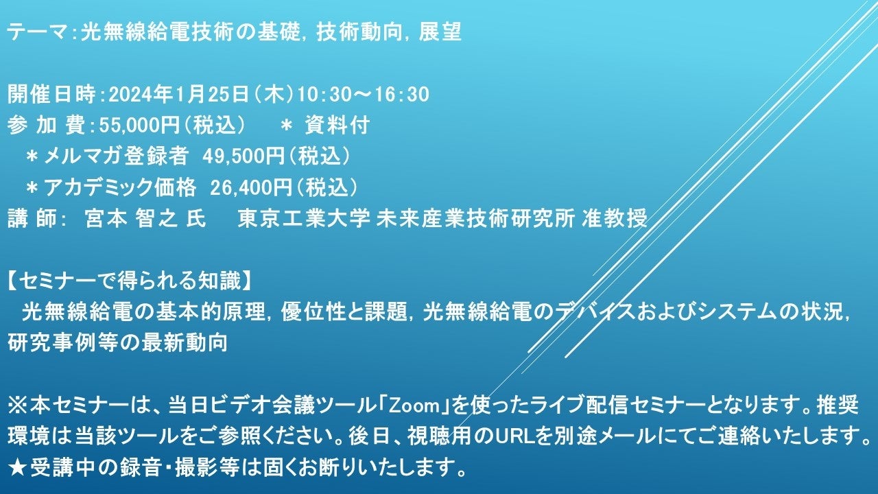 【ライブ配信セミナー】光無線給電技術の基礎,技術動向,展望 1月25日(木)開催 主催:(株)シーエムシー・リサーチ