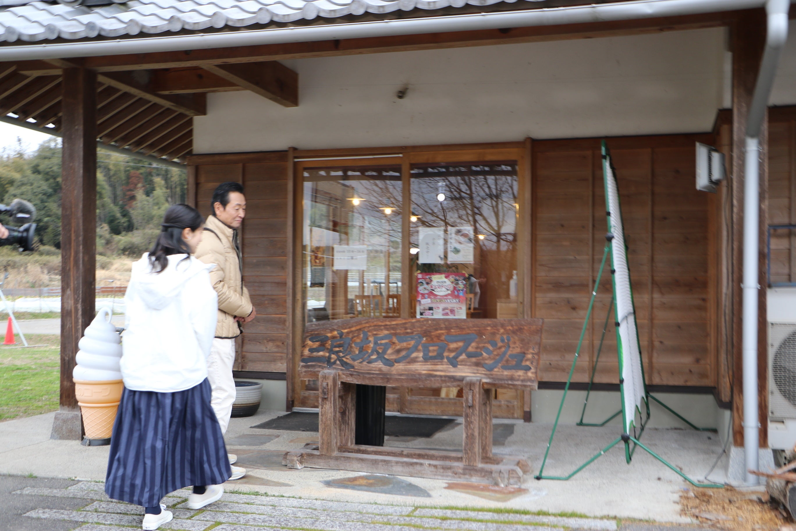 試飲を堪能したふたりは、電車に乗ってワインのお供を探しに三良坂(みらさか)へ。自然豊かな里山で営むチーズ工房【三良坂フロマージュ】にお邪魔します。大阪出身の店主が作るチーズは世界中で数々の賞を受賞しています。