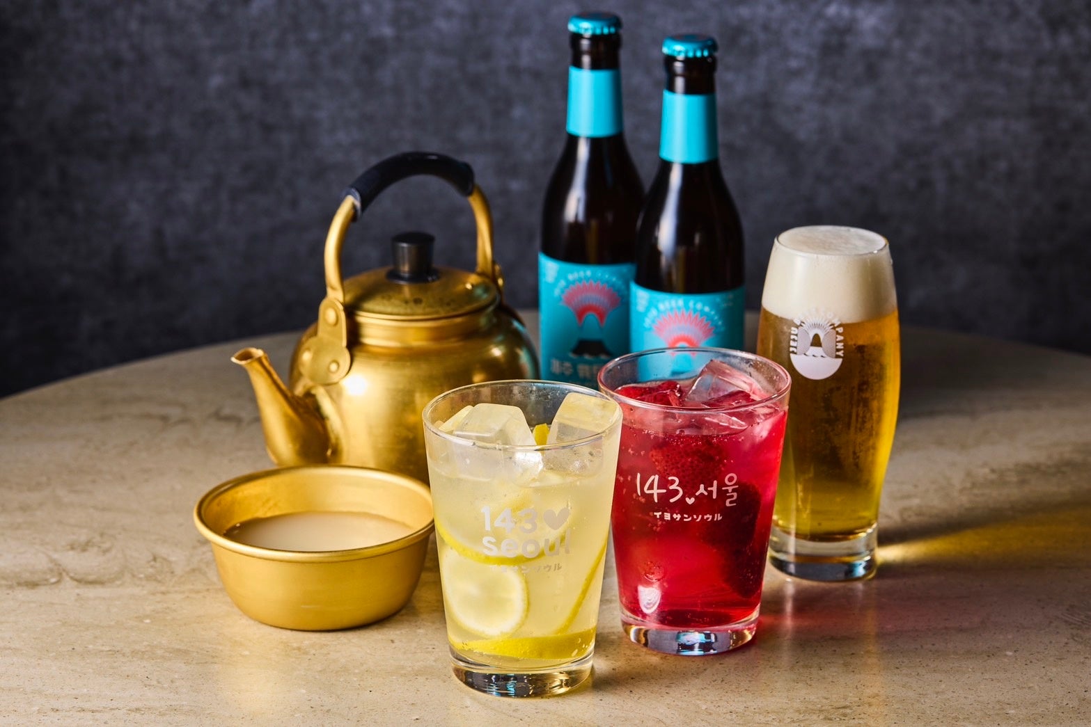 「チェジュビール」をはじめ、韓国を代表する焼酎「チャミスル」を使ったオリジナルサワー、マッコリカクテルなど、韓国グルメにぴったりのドリンクが充実。お酒が好きな方はもちろん、お酒が苦手な方も楽しめるよう甘酸っぱい「ザクロ茶」や、香ばしい「コーン茶」など多彩なラインアップでご用意しました。