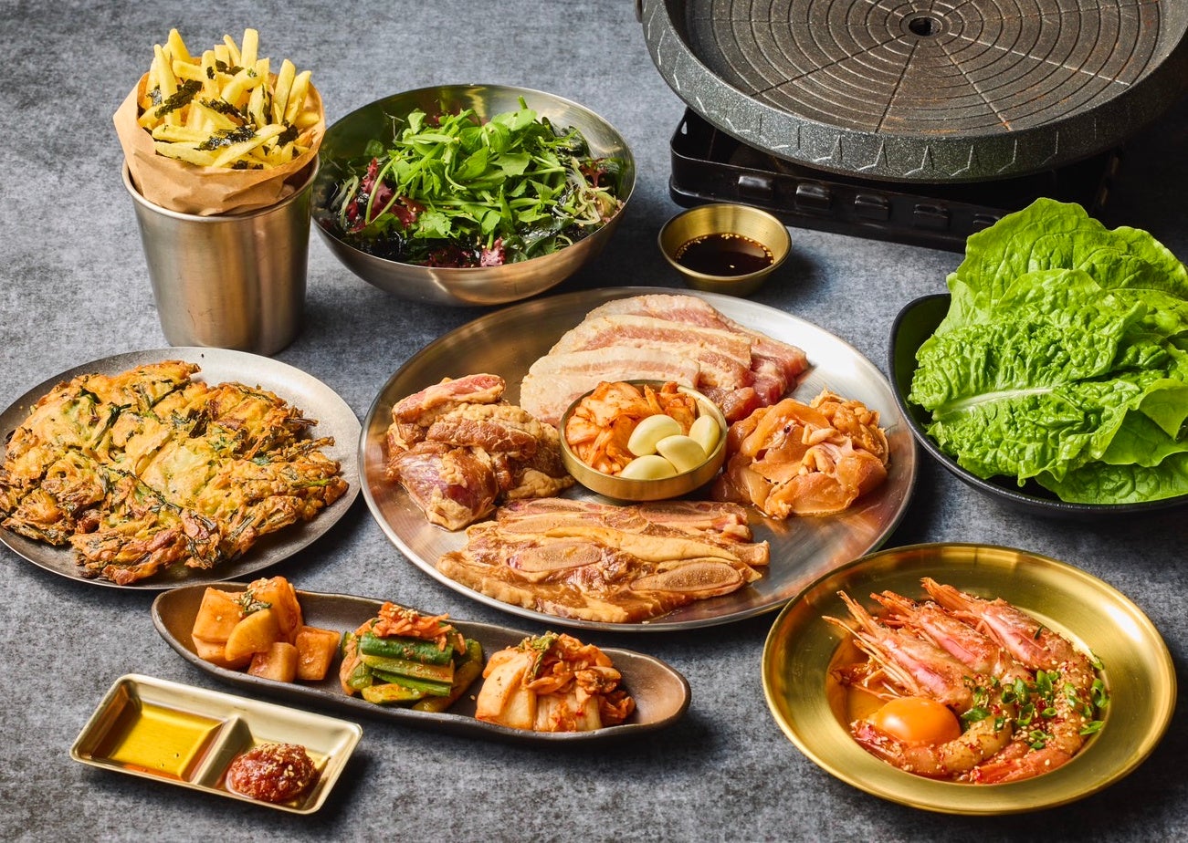 香ばしく焼いた「サムギョプサル」や、特製タレに漬け込んだ「カルメギサル」、甘辛の「タッカルビ」など、韓国本場の味を楽しめるBBQプランです。さらに、プラン限定で登場する「カンジャンセウ」は、一度食べたらやみつきになる逸品。ドリンクは、人気の「チェジュビール」や「チャミスル」を使ったオリジナルサワー、マッコリカクテルなど、多彩なラインアップをご用意。仲間と楽しめる特別なプランで、本格韓国BBQを心ゆくまでお楽しみいただけます。