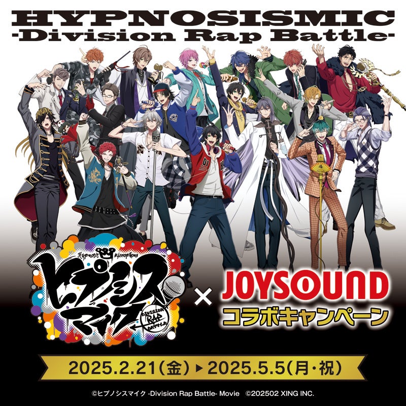 株式会社エクシングの子会社で、全国にカラオケ店舗・ネットカフェ店舗を展開する株式会社スタンダード(本社:東京都港区、代表取締役社長:小林克章)は、2025年2月21日(金)から2025年5月5日(月・祝)までの期間中、「映画『ヒプノシスマイク-Division Rap Battle-』×JOYSOUND直営店コラボキャンペーン」と題して、JOYSOUND直営店67店舗にて、オリジナルノベルティ付きコラボドリンクを展開します。