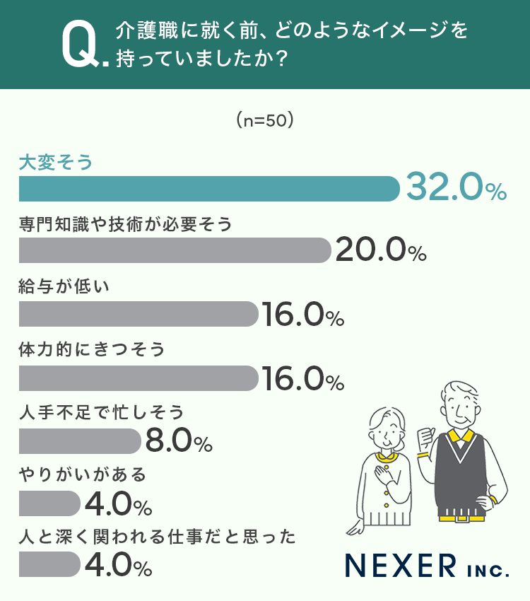 株式会社NEXER・介護職に就く際のイメージ・重視ポイントとスキルアップ・研修に関する調査
