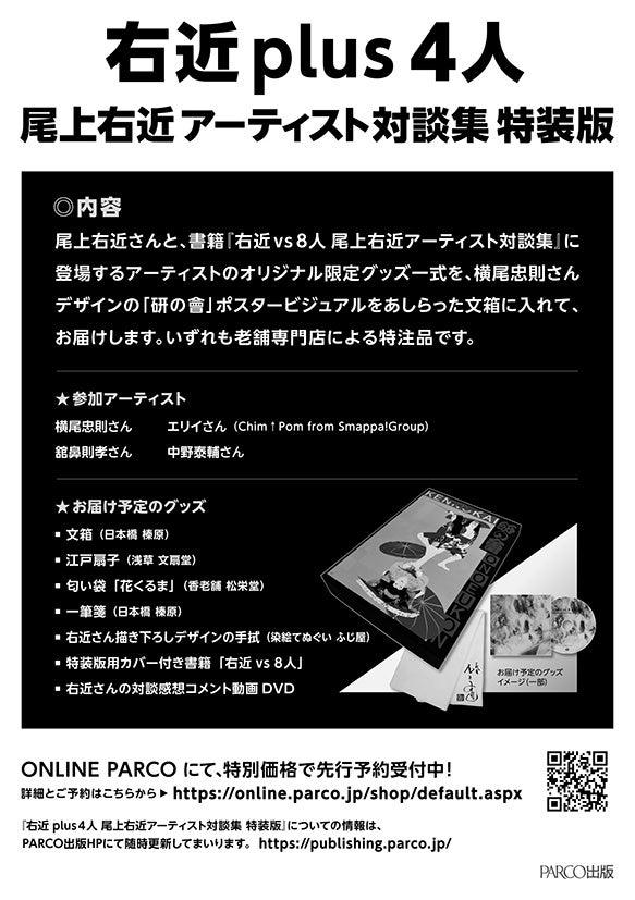 『右近plus 4人 尾上右近アーティスト対談集特装版』についての情報は、PARCO出版HPにて随時更新してまいります。