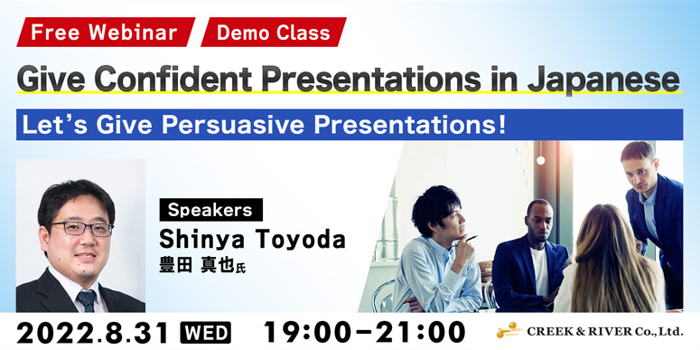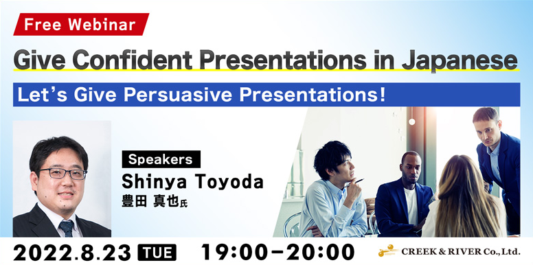 On August 23rd(TUE) and 31th(WED), Creek & River Co., Ltd.(C&R) will hold a seminar “Let's Give Persuasive Presentations! For those who want to present confidently in Japanese.”