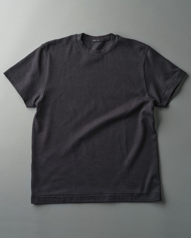 上質なスーピマコットンを採用し、ハイクラスな肌触りとツヤにより見た目にも上質さが伝わる1枚に。肌に直接 触れる裏の素材には汗をかいてもさらりとした触感の蒸れにくい和紙糸を使用し、白Tシャツ着用時の透け感を防ぐため、"プレーティング天竺”という表と裏が異なる素材の二重構造設計を採用。