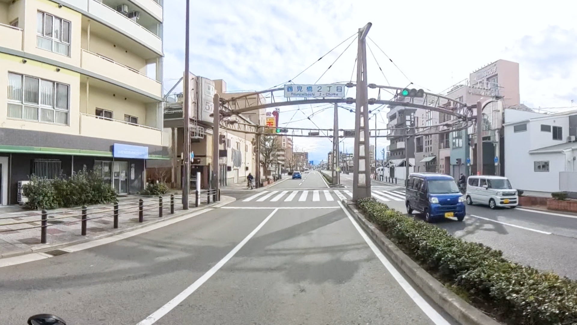 なにわ筋に面する、鶴見橋商店街の交差点。そこで見つけたのは、ちょっと変わった信号機。