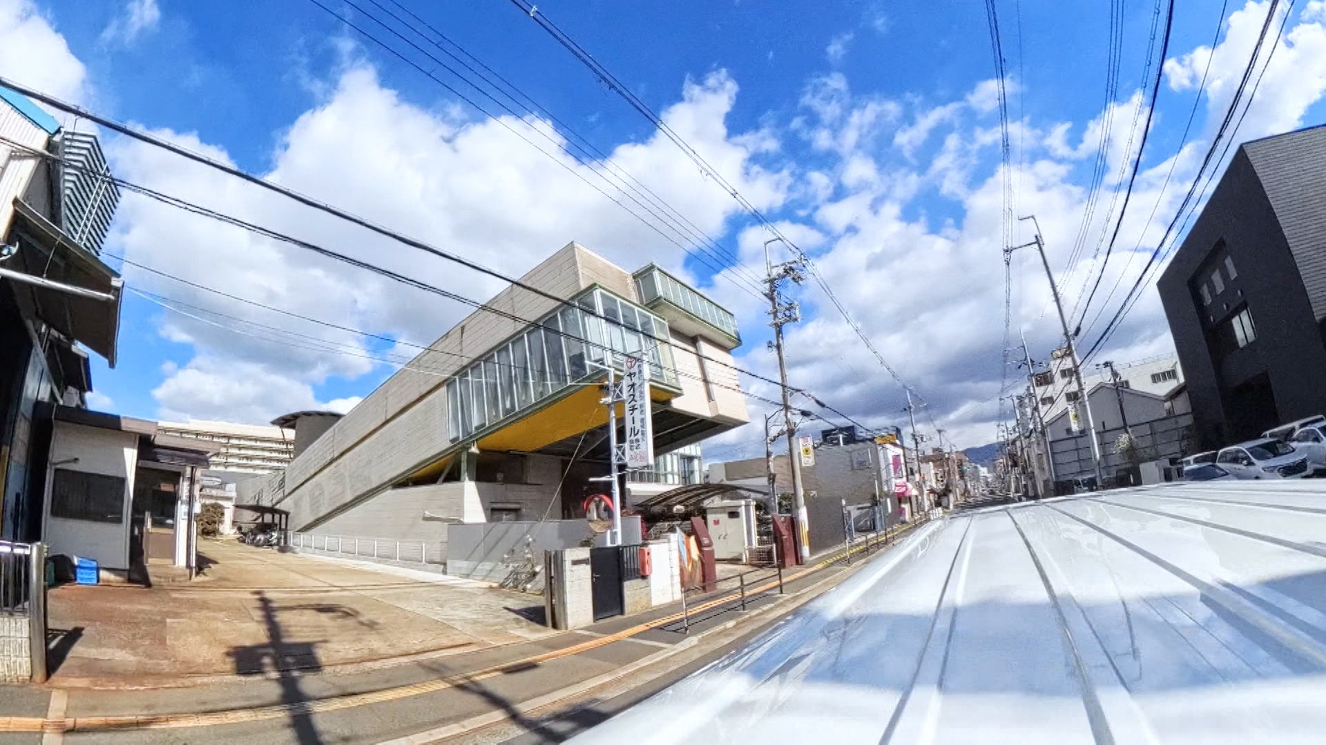 JR八尾駅から大阪市へ向かって走行中、思わず二度見する建物を発見! その傾き、なんと約30度。傾斜約4度のピサの斜塔もびっくりの急角度です。「地面が傾いてる?」「スキーの練習台?」地元の人も首をかしげるこの建物。