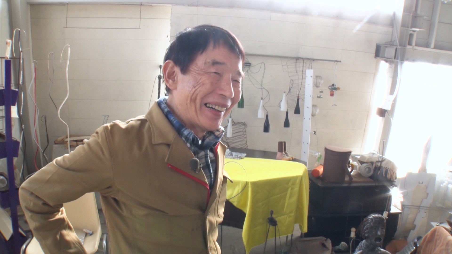 1階は「吉村金属工業」という工場。社長の吉村信太朗さんは、仕事のかたわらアート作品も制作している人物で……? なぜ建物をここまで斜めに建てたのか? その理由に迫ります。