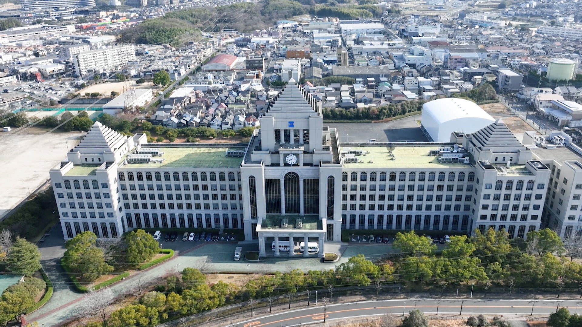 そう、国会議事堂にそっくりなんです。ここは大阪工業大学枚方キャンパス。それにしてもなぜ国会議事堂のようなデザインなのか? 学生さんたちに聞いても「防犯?」「東京への憧れ?」と、理由は分からない様子。大学なのに国会議事堂に似たデザインになった、その真相に迫ります。