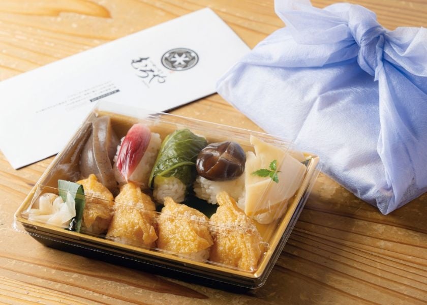 定番の一口いなりと、高知県の郷土料理を<むろや>風に味付けした「田舎寿司」の詰め合わせ。様々な食感で見た目にも楽しめます。