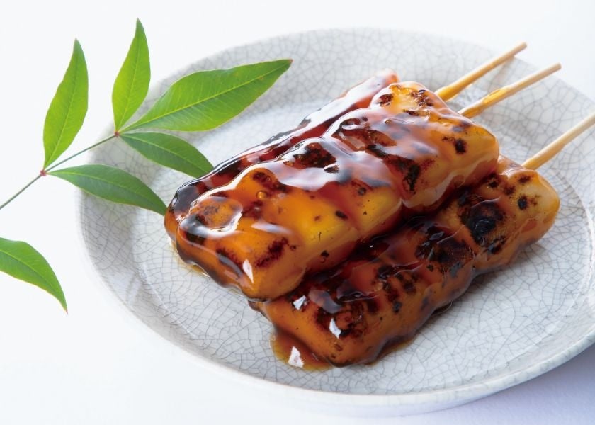 ご注文いただいてから直火であぶる香ばしい団子に、上質昆布とたまり醤油、白ざら糖を使った特製タレを絡めた人気商品。