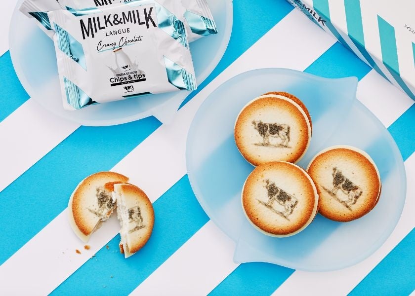 食べた瞬間ホワイトチョコレートとミルクの甘味が口いっぱいに広がる、5層仕立ての立地なラングドシャです。
