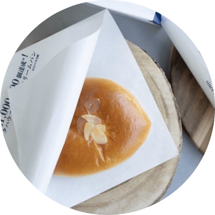 薄皮生地の中になめらかなカスタードクリームがたっぷり入った、大人気のクリームパン。