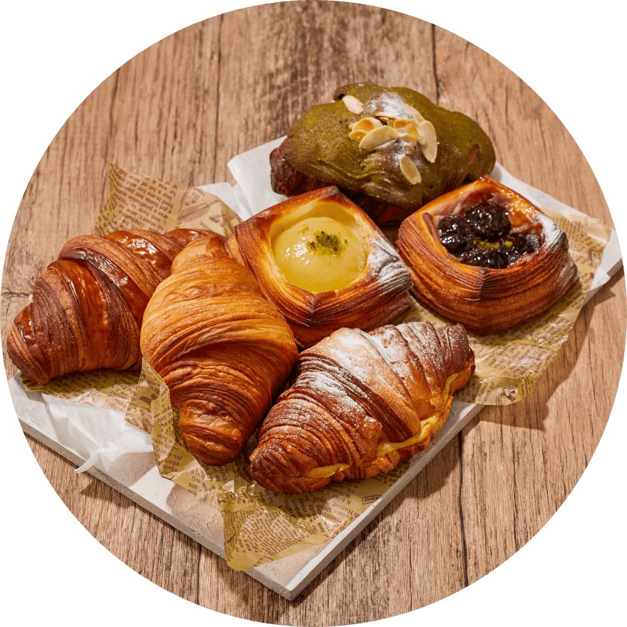良質な素材と見た目の美しさにもこだわったクロワッサンやデニッシュは、お土産におすすめです!6個お買いあげで無料のギフトボックスに!