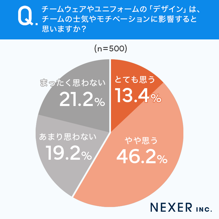 続いて、全回答者に、チームウェアやユニフォームの「デザイン」がチームの士気やモチベーションに影響すると思うかを聞いてみました。