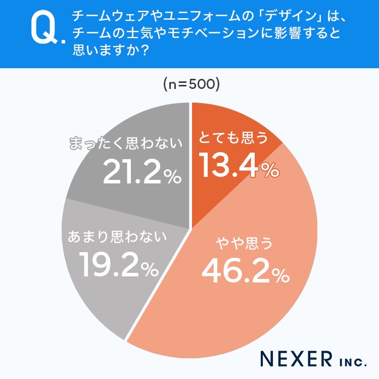 今回の調査では、おそろいのウェアを着た経験がある方の56.3%が「チームの一体感が生まれた」と感じており、約6割がデザインはチームの士気やモチベーションに影響すると回答しました。