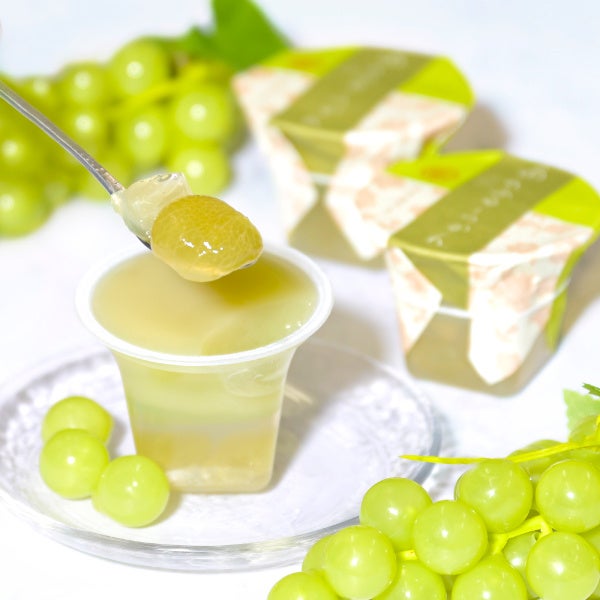 口どけの良いマスカット風味の水羊羹と、蜜漬けぶどうを丸ごと閉じ込めた柔らかなゼリーの2層仕立て。和と洋のハーモニーをお楽しみください。