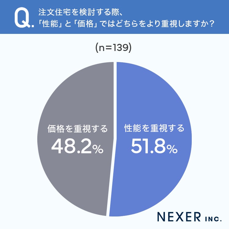 ■51.8%が、注文住宅を検討する際に「性能を重視する」と回答