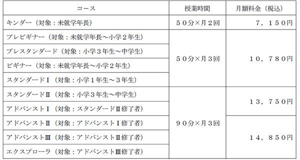 4 料金体系(入会金、教材費は不要)