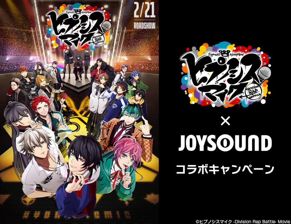 株式会社エクシングが展開する通信カラオケ「JOYSOUND」では、映画『ヒプノシスマイク -Division Rap Battle-』の公開を記念して、オフィシャルグッズなどの豪華プレゼントが当たる「映画『ヒプノシスマイク -Division Rap Battle-』×JOYSOUND コラボキャンペーン」を、2月21日(金)から開催します。