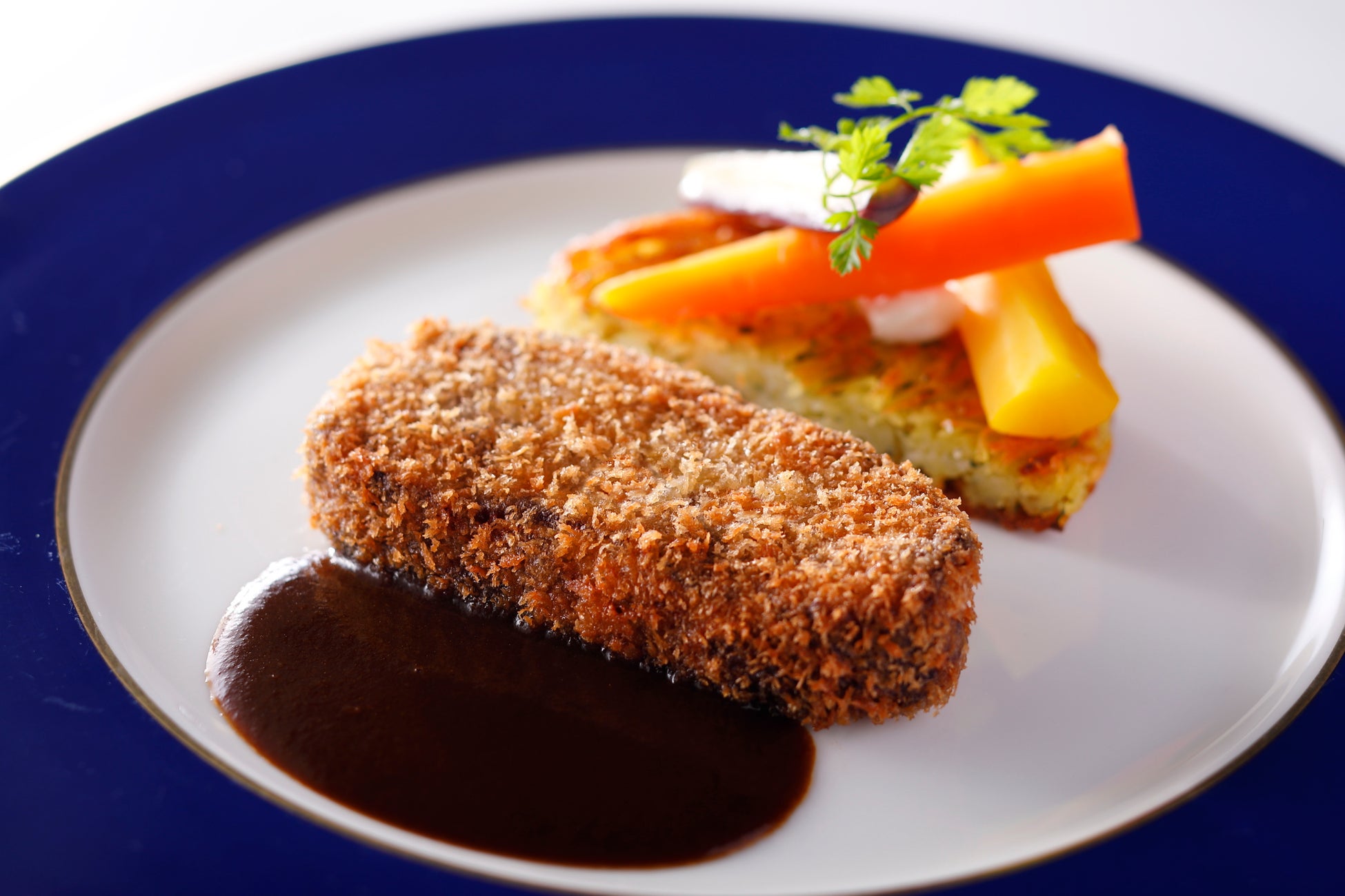 洋食の定番カツレツに和の要素をプラスした「ホテルニューオータニの新江戸洋食」ならではの逸品です。外はサクサク、中はほろほろの柔らかな食感がこの上ない幸福なひと時をお届けいたします。