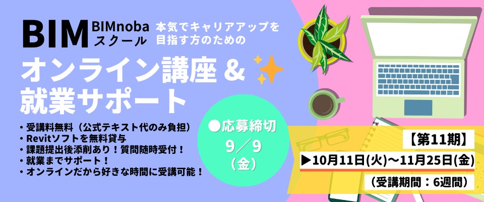 【Autodesk認定】建築CAD経験者・建築パース作成経験者も歓迎!無料オンラインRevit研修「BIMnobaスクール」11期生募集‼
