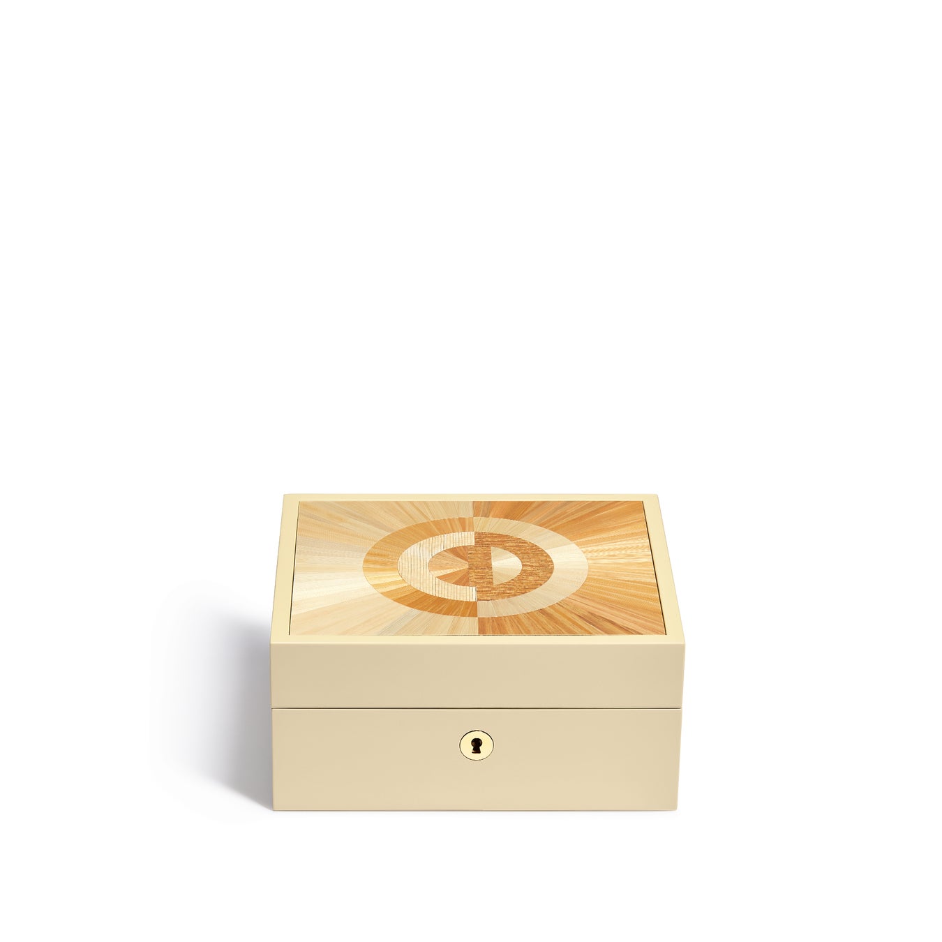 クリスチャン・ディオールの芸術への情熱と、彼が生きた時代の芸術家たちからインスピレーションを得て、コーデリア・ドゥ・カステラーヌは、ディオール メゾンのために考案されたシグネチャーライン「CD アントレラセ」の新作を手がけました。画家を思わせるグラフィカルなタッチで再解釈された"CD"のイニシャルが、ニュートラルカラーやパステルカラーのブランケットやクッションにあしらわれています。旅をテーマにしたバックギャモンセットも、この絵画的なモチーフで彩られ、楽しい交流のひとときをお約束します。卓越したサヴォワールフェールが込められたこの限定コレクションは、18金*をあしらったレザーを組み合わせたストローマルケトリ(わら寄木細工)によるケースや、1798年創業の「Manufacture des Émaux de Longwy(マニュファクチュール デ エモー ドゥ ロンウィ)」とのコラボレーションによるエナメルセラミックケースといった、唯一無二のクリエイションが特徴的です。創造性が様々な形で表現された、憧れのオブジェです。