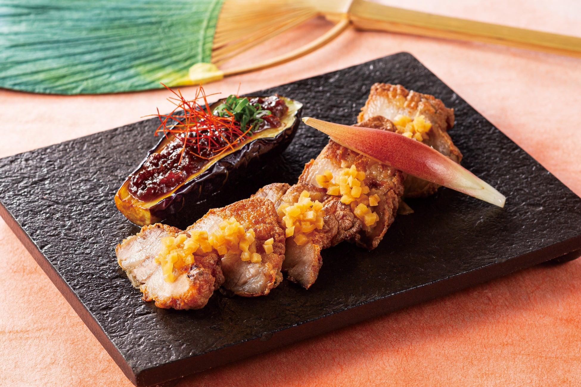 ◆四万十ポークの柚庵(ゆうあん)焼き~高知県産茄子の土佐あかうし肉味噌のせ~ 1,480円