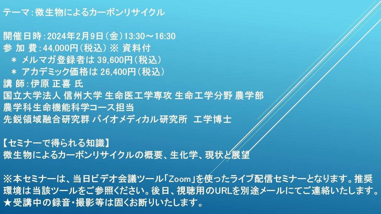 【ライブ配信セミナー】微生物によるカーボンリサイクル 2月9日(金)開催 主催:(株)シーエムシー・リサーチ