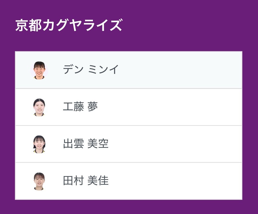 ノジマTリーグ 2025-2026シーズン 公式戦 11月8日(土)開催 木下アビエル神奈川 vs 京都カグヤライズのベンチ入り選手を発表いたします。