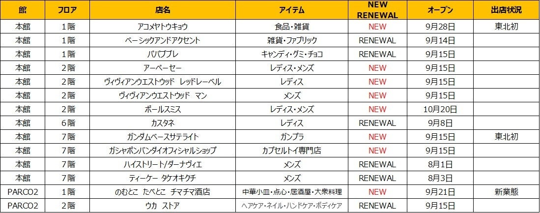 ★仙台PARCO 2023年秋リニューアルショップ一覧★