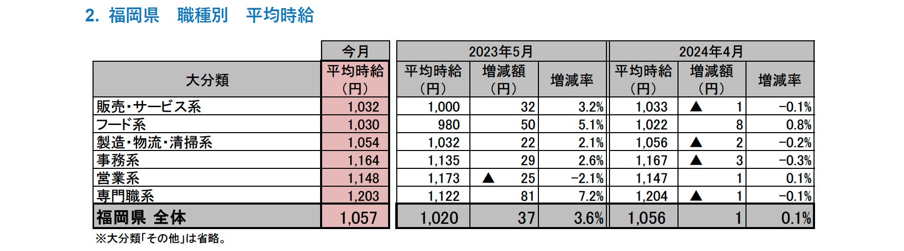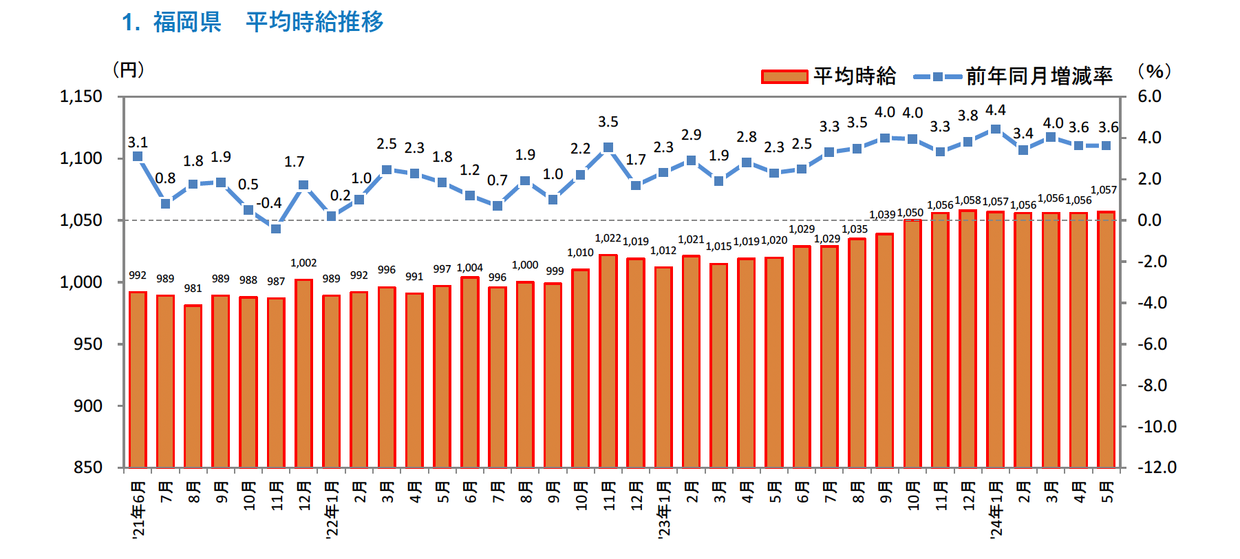■福岡県の平均時給は1,057円(前年同月1,020円、前月1,056円)