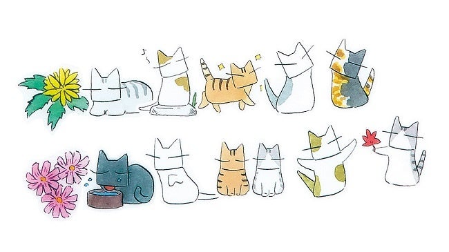 表情豊かな猫たちと季節の花々に癒やされる日本画家 久保智昭さんとつくった「猫とお花のダイカットマスキングテープ」がフェリシモ「猫部™」から登場