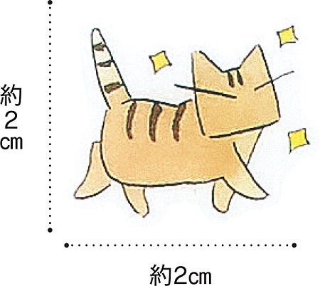 ダイカットマスキングテープなので、1枚ずつはがして使えます。猫1匹の大きさは、約2cm×2cmくらいです。そのまま飾っておきたくなるような、かわいいパッケージでお届けします。