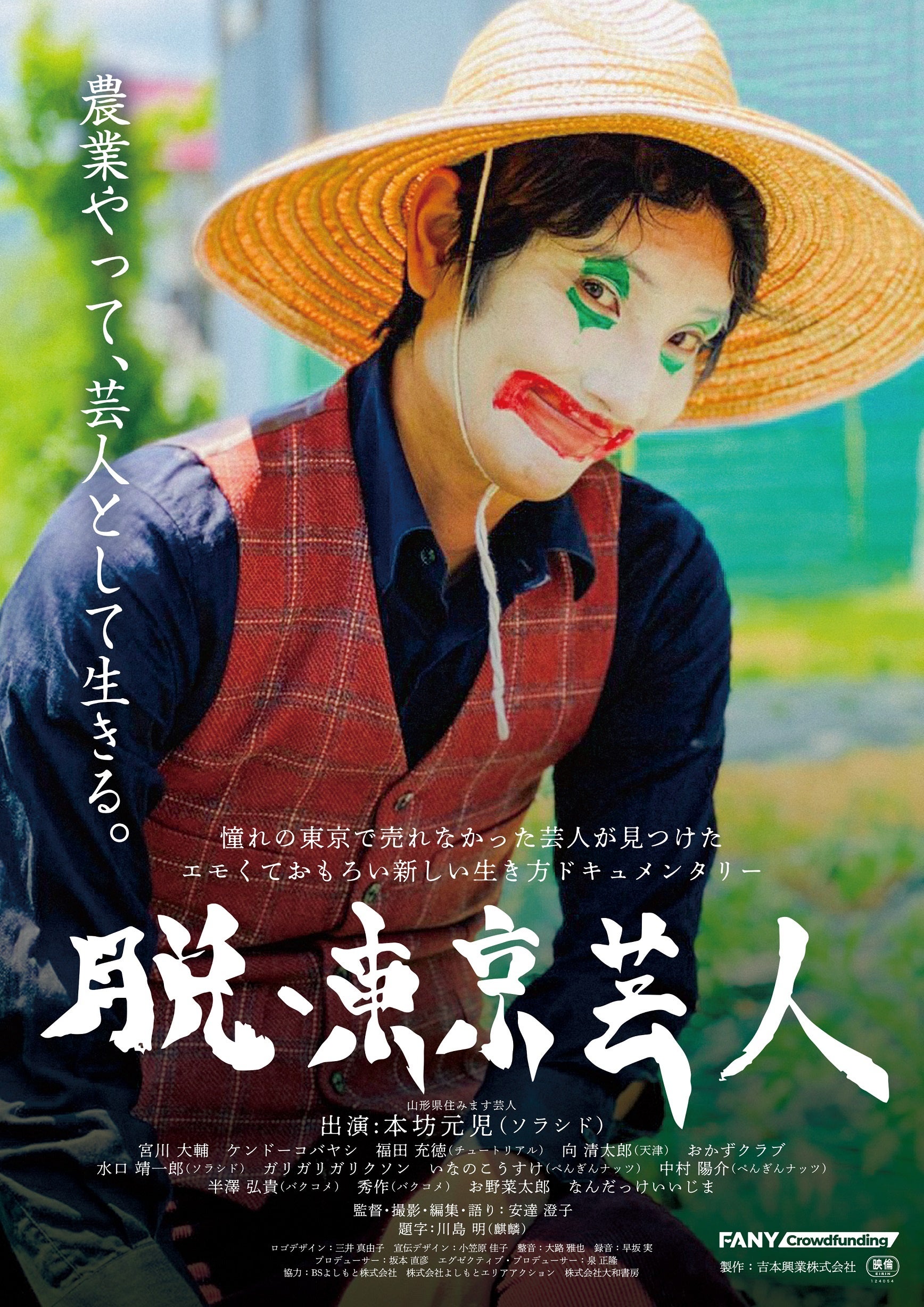 吉本興業が2011年より取り組んでいる「住みます芸人」と「地域発信型映画」の企画で、山形県で活動しているソラシド・本坊元児のお笑いと、西川町で取り組む農業を“リアル”を映し出したドキュメンタリーです。合わせてポスタービジュアルも解禁となり、本坊本人と監督からのコメントも届きました。
