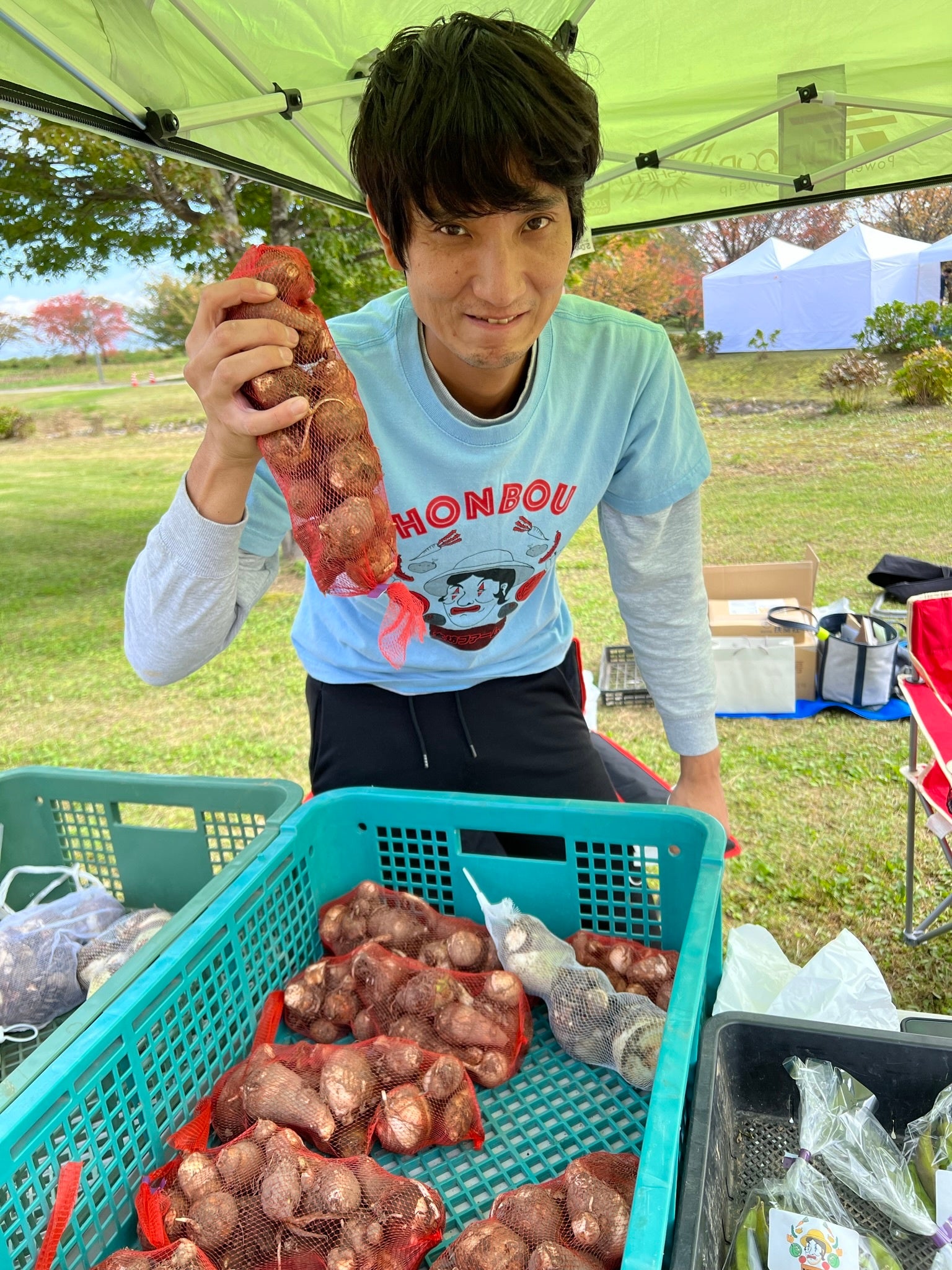 僕達がアンバサダーを務めた日本一の芋煮会フェスティバルで食べて欲しかったのですが、生育が間に合いませんでした。是非、本坊芋煮を作ってみてください。