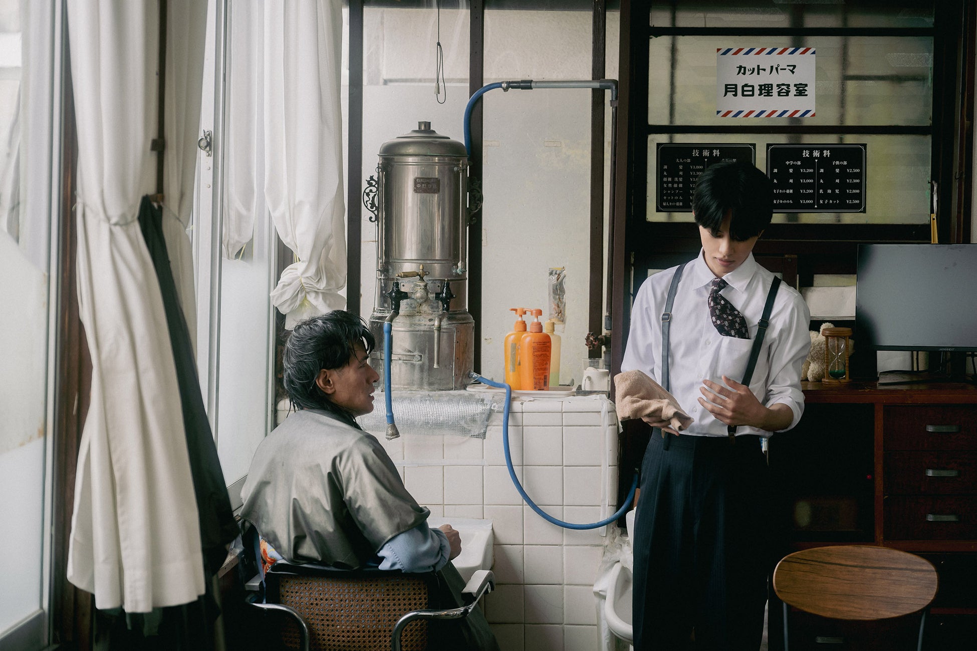 貯金なし・居場所なしの、無力だが情にあつい元美容師・日暮歩を演じるのは、数多くの映画やドラマに出演、最近では連続テレビ小説「あんぱん」(NHK)や「愛の、がっこう。」(フジテレビ)で演じた役柄が話題を呼んでいる中島歩。そして、月白美容室を1人で営むクールで冷徹な店主・月白司を演じるのは、「ベイビーわるきゅーれ エブリデイ!」にも出演し、阪元監督作品に2回目の出演となる草川拓弥。「ベビエブ」に続き本格的なアクションにも挑戦しています。
